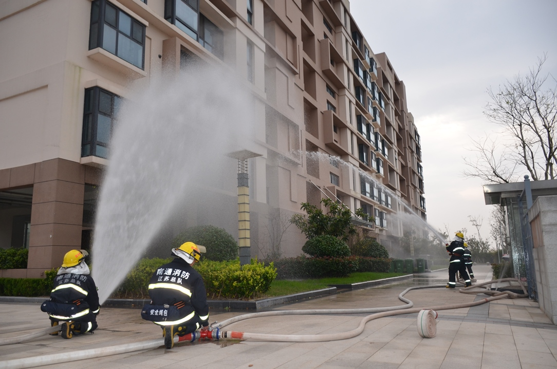 為了提高在城師生的安全意識以及應急逃生技能, “11.9消防安全日”之際,通州灣科創城、示范區消防大隊和蘇州東吳物業管理有限公司聯合江蘇商貿學院1500多名師生在A03公寓樓開展消防演練。 11月7日16時,隨著總指揮演練指令下達后,消防演習煙霧彈的點燃和警報的拉響,A03地塊1、2、3、4、5、6號公寓樓里的商貿師生,按照預定路線,用毛巾捂住口鼻,迅速有序地疏散到集結點,用時4分40秒,學生會負責清點人數,確認無人受傷后,向總指揮匯報集合情況。消防大隊接警后,專職消防員駕駛消防車火速趕到,六名消防員立即展開救援,現場展示水槍滅火等動作。