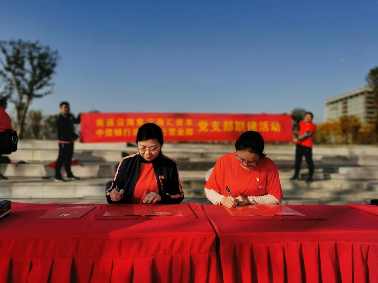 活動(dòng)前,南通沿海集團(tuán)海匯黨支部書(shū)記王玉蓮和中信銀行南通分行營(yíng)業(yè)部黨支部書(shū)記康靈捷共同簽訂了結(jié)對(duì)聯(lián)建協(xié)議書(shū)。王玉蓮表示,基層黨組織結(jié)對(duì)共建活動(dòng)將堅(jiān)持圍繞中心、服務(wù)大局、統(tǒng)籌兼顧、整體推進(jìn)的原則,通過(guò)活動(dòng)開(kāi)展,改進(jìn)組織生活、豐富活動(dòng)內(nèi)容、增強(qiáng)活動(dòng)實(shí)效,努力形成互帶互動(dòng)、優(yōu)勢(shì)互補(bǔ)、資源共享、共同發(fā)展的基層黨建工作新格局。